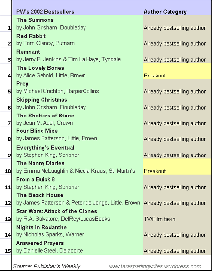 There were one or two so-called “breakouts” in 2002 – authors who either never shifted enough copies of their work to make the bestseller list, or first-time authors finding immediate success – but very few.