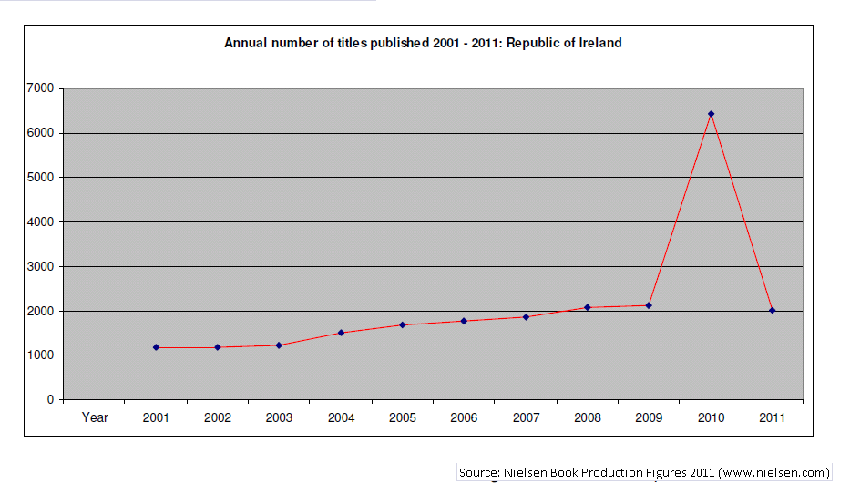 According to Nielsen, the number of titles published in Ireland went from just over 2,000 in 2009 to almost 6,500 in 2010.