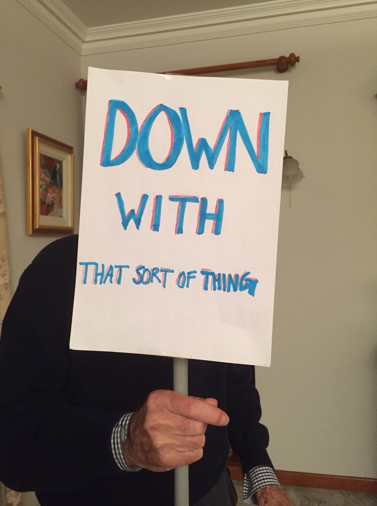 Dad felt so strongly about this particular topic, he had to sit down in order to protest more effectively